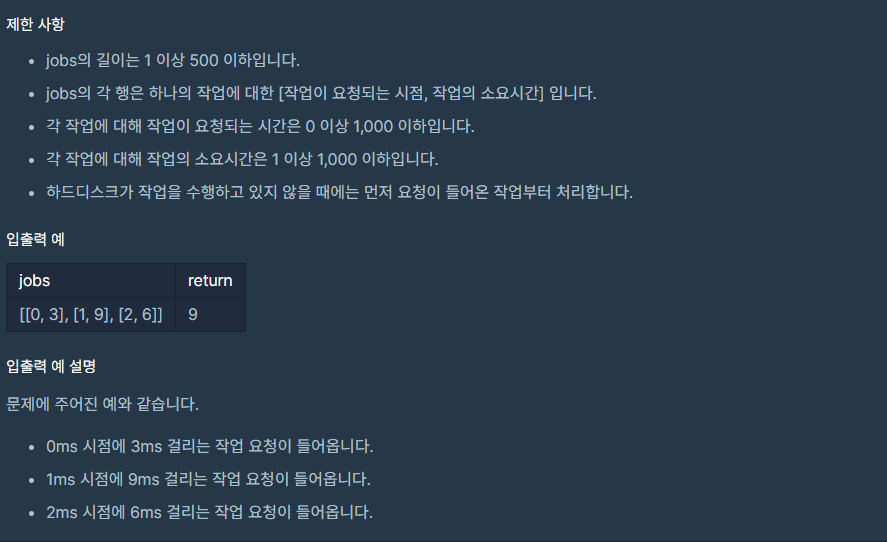 while(iter!=jobs.end()&&(*iter)[0]<=time){//작업이 이미 도착해있다면